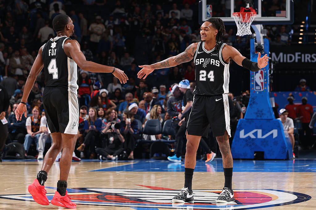 马刺半个月三杀卫冕冠军雷霆 取得联盟最长8连胜 admin 2025年12月26日 09:30 68 0 搜狐体育消息,北京时间12月26日,NBA圣诞大战,马刺击败雷霆,取得八连胜。马刺战绩来到23胜7负,继续稳居西部第二,联盟第三,距离雷霆迫近到2.5胜场差。本场比赛的胜利,是半个月来,马刺第三次击败雷霆。